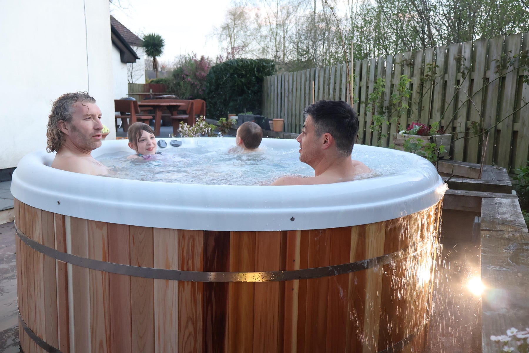 The bench seat allows fluid seating positions. The tub can comfortably seat a family of 5, and at a push, can squeeze up to 7 adults and kids.